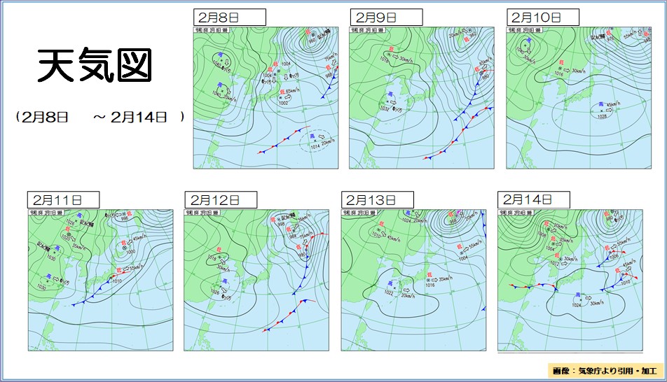 Weather and temperature summary (February 8th to February 14th) Snow in southern Kanto, 5cm of snow observed in central Tokyo, the coldest of the season