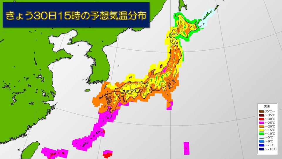 Eastern Japan is widely covered by high pressure, and the Kanto and Tokai regions are likely to see some places where the sun will reach them, causing temperatures to rise significantly compared to the previous day. The expected maximum temperature in Tokyo is 24c, and in Nagoya it will be 25c, and it will be a summer day in some places.