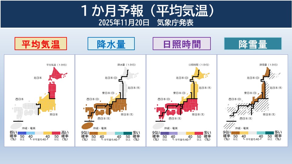 Today, the 20th (Thursday), the Japan Meteorological Agency announced the weather forecast for the next month (11/22 to 12/21).