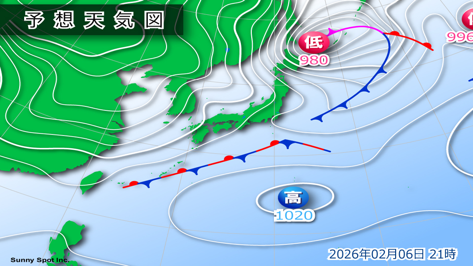 A low-pressure system is expected to develop and advance over the Sea of Japan from the 5th (Thursday) to the 6th (Friday). As a result, there is a risk of stormy weather on the 6th (Friday), with increased snow, rain, and strong winds, especially in northern Japan.