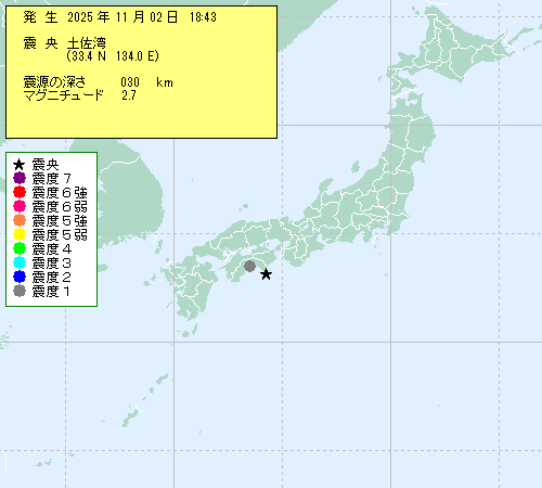 | 2025年11月01日 11時17分 | 蝠ェ?????? (33.1N,131.2E) |