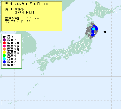 | 2025年11月09日 18時35分 | O???? (39.4N,143.3E) |