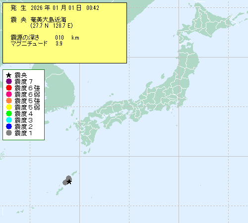 | 2026年01月01日 00時42分 | ????蜩?゚海 (27.7N,128.7E) |