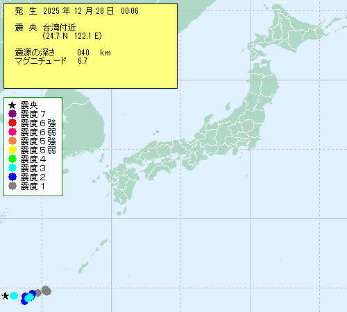 | 2025年12月28日 00時06分 | ?p?t?? (24.7N,122.1E) |
