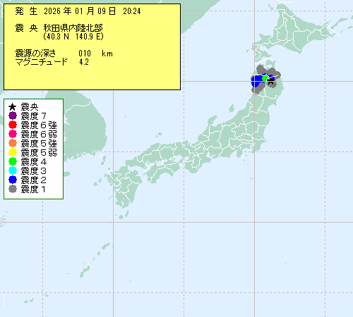 | 2026年01月09日 20時35分 | H?c???????k?? (40.3N,140.9E) |