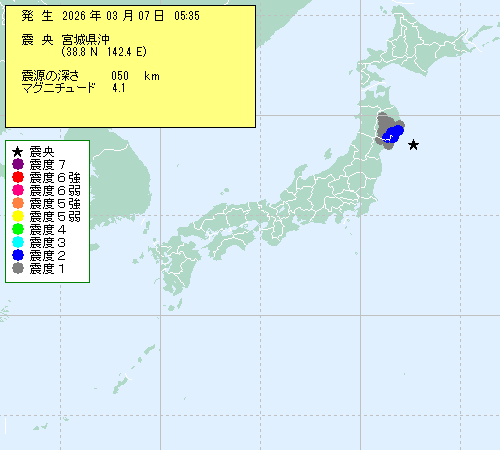 | 2026年03月07日 05時35分 | {?骭ァ?? (38.8N,142.4E) |