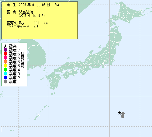 1 月 06 日 13時 31分 ころ地震がありました。