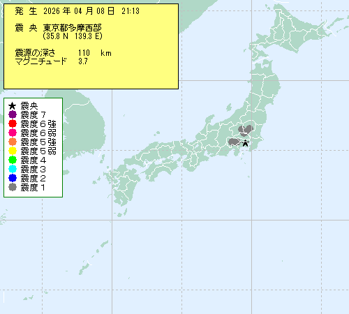 | 2026年04月08日 21時13分 | ????s???????? (35.8N,139.3E) |