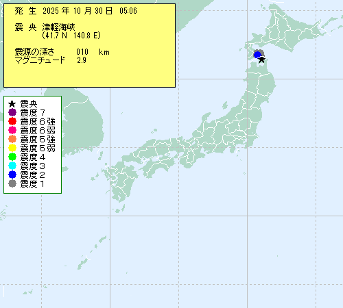 | 2025年10月30日 05時06分 | テ軽?C?? (41.7N,140.8E) |