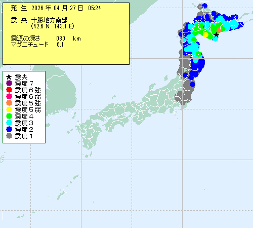 | 2026年04月27日 05時24分 | \???n???部 (42.6N,143.1E) |