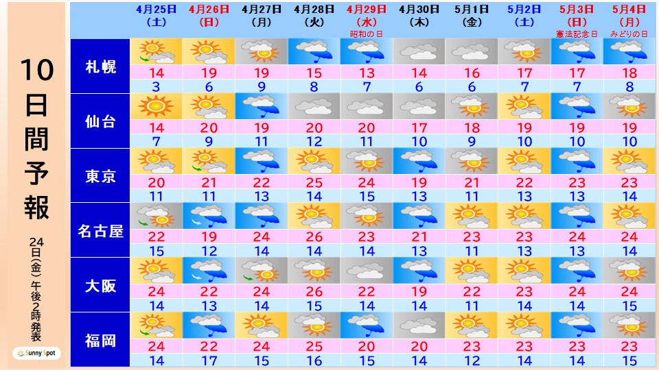 今期間(2026年4月12日〜4月18日)の天候のまとめです。