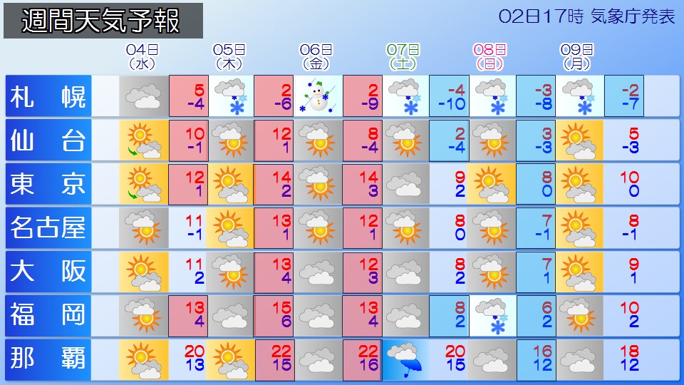 週間天気 4日「立春」を迎えるころ、一時的に寒さ和らぐも、再び寒さが戻る見込み
