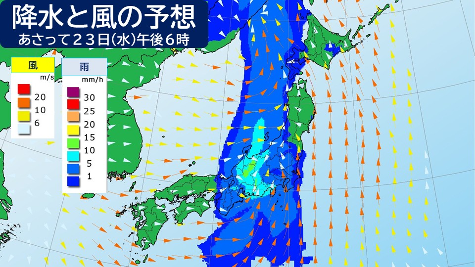 また、低気圧や前線とは別に、関東では沖合にできる風と風のぶつかる収束線の影響で、関東南部の沿岸部から雲が広がるでしょう。