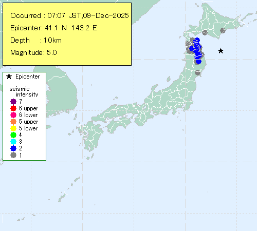The point that observed an earthquake,scene of earthquake (the seismic center) and the information of the scale (magnitude).