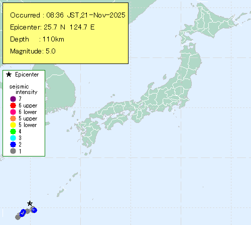 The point that observed an earthquake,scene of earthquake (the seismic center) and the information of the scale (magnitude).