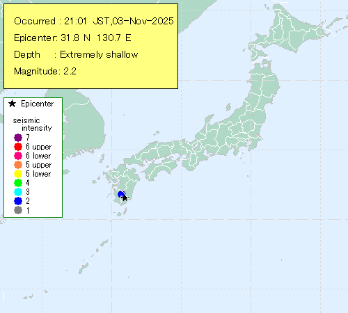 The point that observed an earthquake,scene of earthquake (the seismic center) and the information of the scale (magnitude).