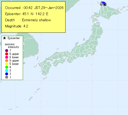 The point that observed an earthquake,scene of earthquake (the seismic center) and the information of the scale (magnitude).