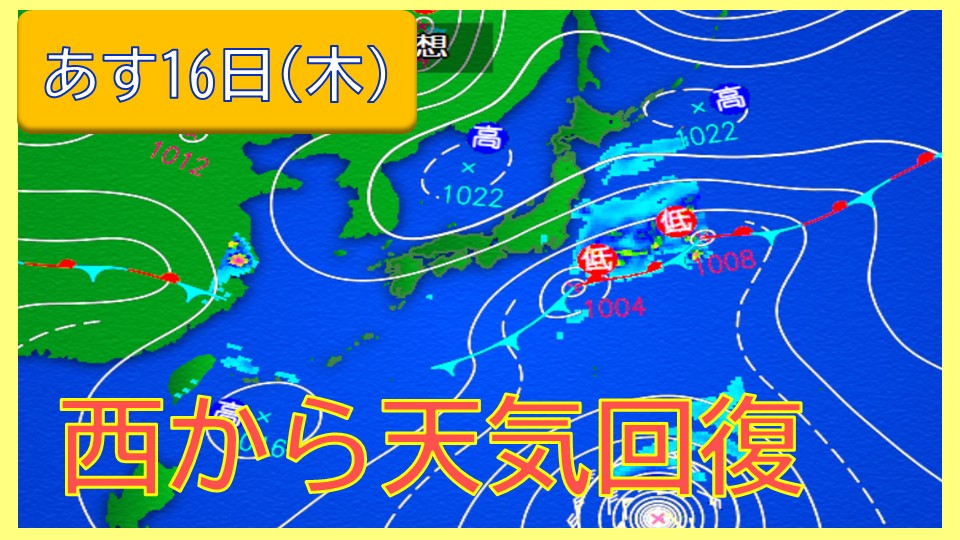 Tomorrow, the 15th (Wednesday), it will rain over a wide area, with rain clouds moving from Kyushu to eastern Japan.
