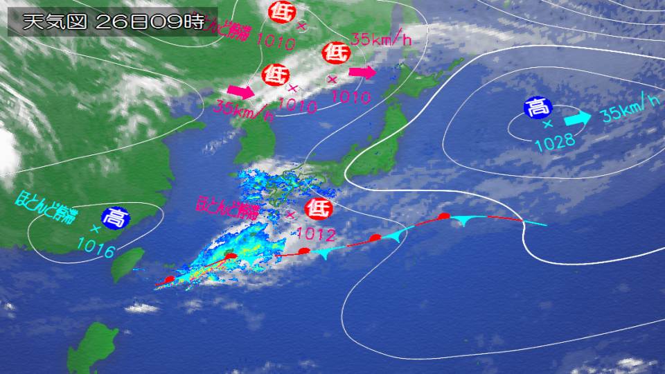 Tomorrow, the 26th (Sun), there will be rain mainly in western Japan due to the influence of a low pressure system. On the Pacific side, the rain is likely to become stronger and there will be places where there will be heavy rain accompanied by thunder. Please be careful about how it rains.