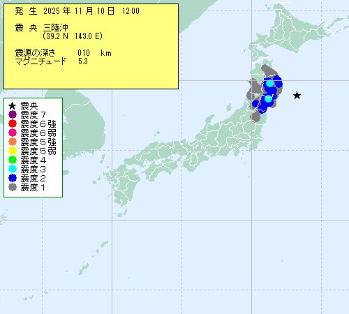 11 月 10 日 12時 00分 ころ地震がありました。