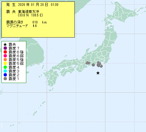 | 2026年01月20日 01時30分 | ??C??????? (33.6N,138.5E) |
