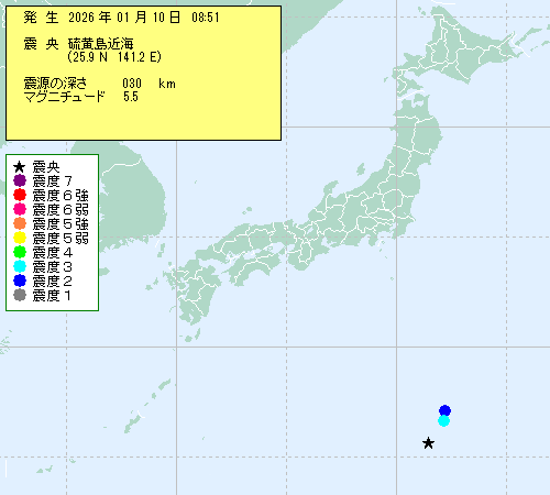 | 2026年01月10日 08時51分 | ??????゚海 (25.9N,141.2E) |