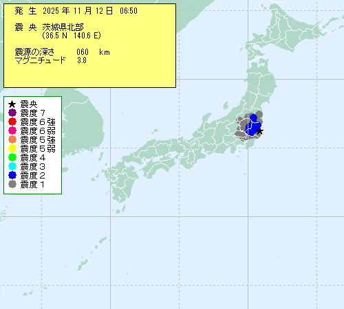 | 2025年11月12日 06時50分 | ?骭ァ?k?? (36.5N,140.6E) |