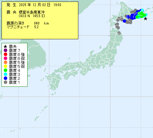 | 2025年12月02日 19時03分 | ????????東?? (43.0N,145.5E) |