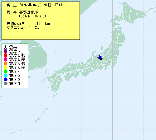 | 2026年04月20日 07時41分 | ??県?k?? (36.6N,137.9E) |