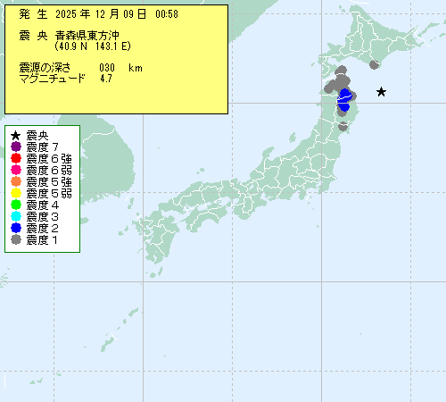 | 2025年12月09日 00時58分 | ツ森???????? (40.9N,143.1E) |