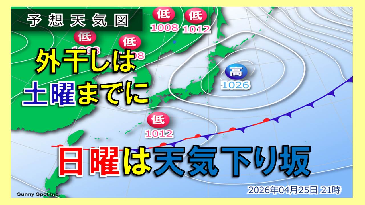 また、天気だけでなく気温の変化にも注意が必要です。きょう・あすは太平洋側を中心に気温が上がりますが、木曜・金曜は平年並みの気温に戻り、薄着では肌寒く感じる可能性があります。体調を崩さないよう、服装選びにお気をつけください。