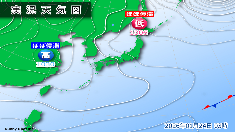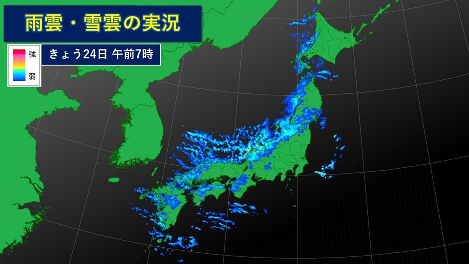 きょう24日(土)は、次第に冬型の気圧配置が強まり、午後にかけて寒気が南下する見込みです。引き続き日本海側を中心に大雪への警戒が必要です。太平洋側は晴れる所が多いでしょう。
