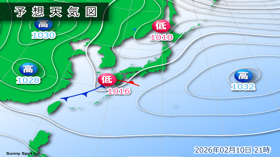 10日(火)、日本の南にあった高気圧は次第に遠ざかり、夜には前線を伴った
