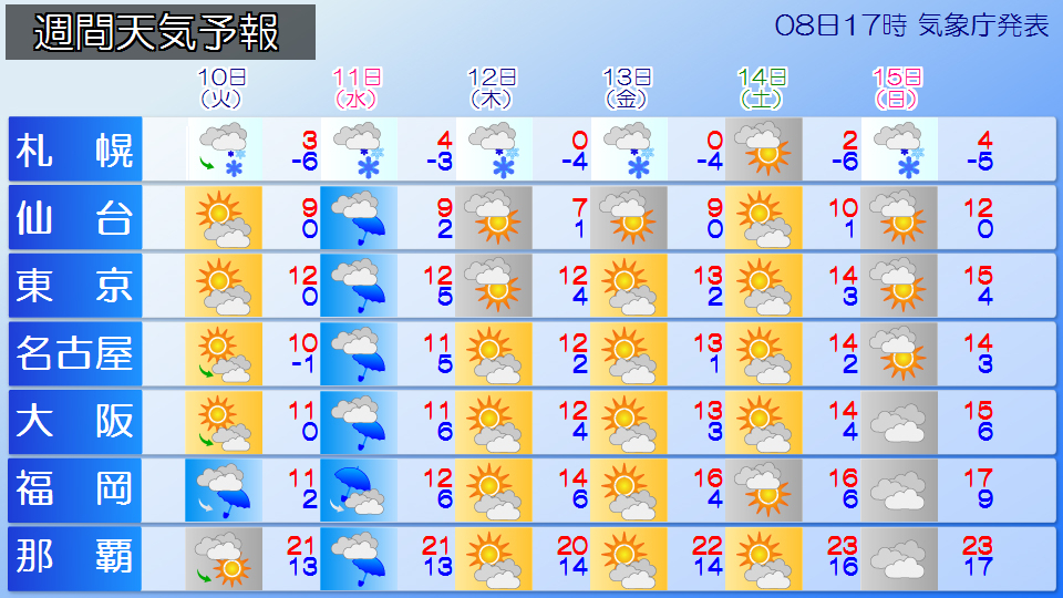 きょうから金曜日頃までは春の暖かさ、土日は一転して真冬の寒さ