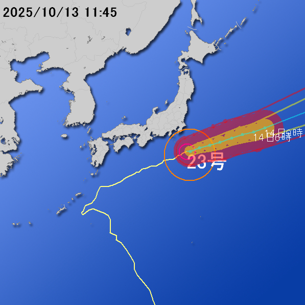 強い台風第23号は、13日昼前にかけて強い勢力を維持し伊豆諸島にかなり接近する見込みです。伊豆諸島では、暴風、うねりを伴う高波、土砂災害、