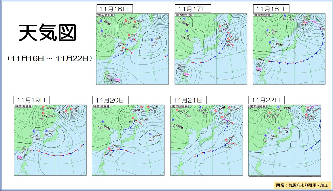■今期間(11月16日〜11月22日)の天候のまとめ