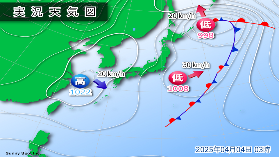 きょう4日は、西日本〜東日本にかけて高気圧に覆われる見込みです。北日本は寒気の影響が残り雲の広がりやすい天気でしょう。