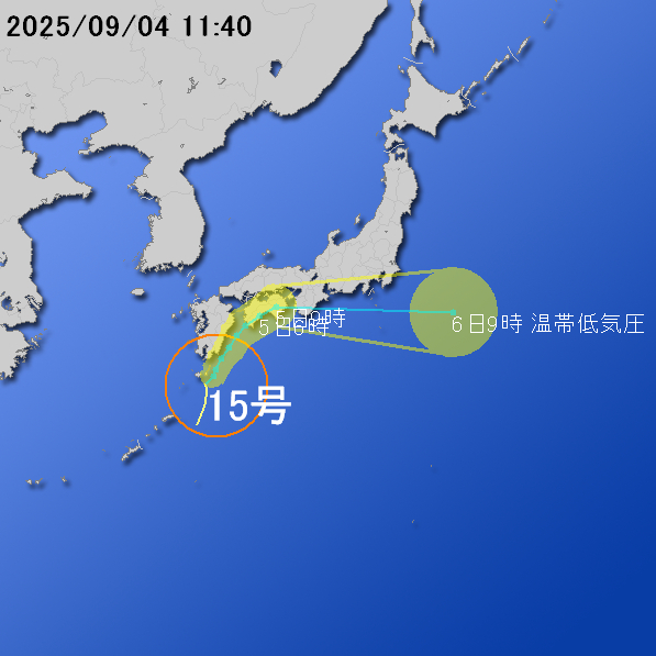台風第15号は、4日は九州にかなり接近し、その後、進路を東よりに変え、