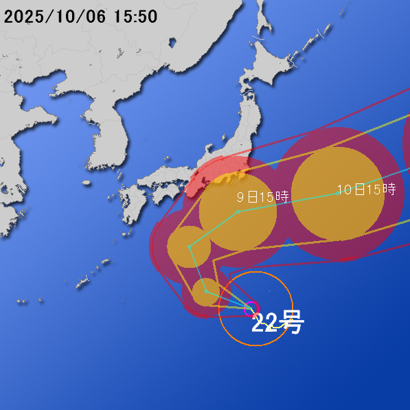 また、台風第22号の影響により、西日本から東日本の太平洋側では、8日から10日頃にかけて、海上を中心に強い風や非常に強い風が吹き、しけや大しけとなるおそれがあります。